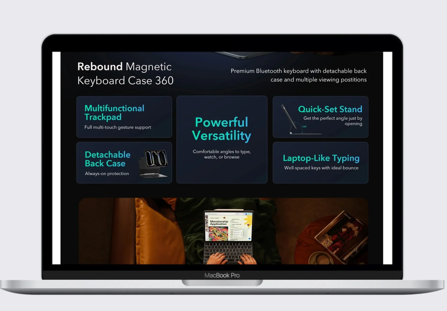 The target audience for the campaign was power users, so I tailored the messaging to target customers that use their iPad as laptops for work and creative professionals that edit videos or create digital art. I framed our offering as a cohesive collection of tech that made users’ everyday interaction with their iPad better, making the campaign consistent with the brand’s slogan: Tech Made Easier.